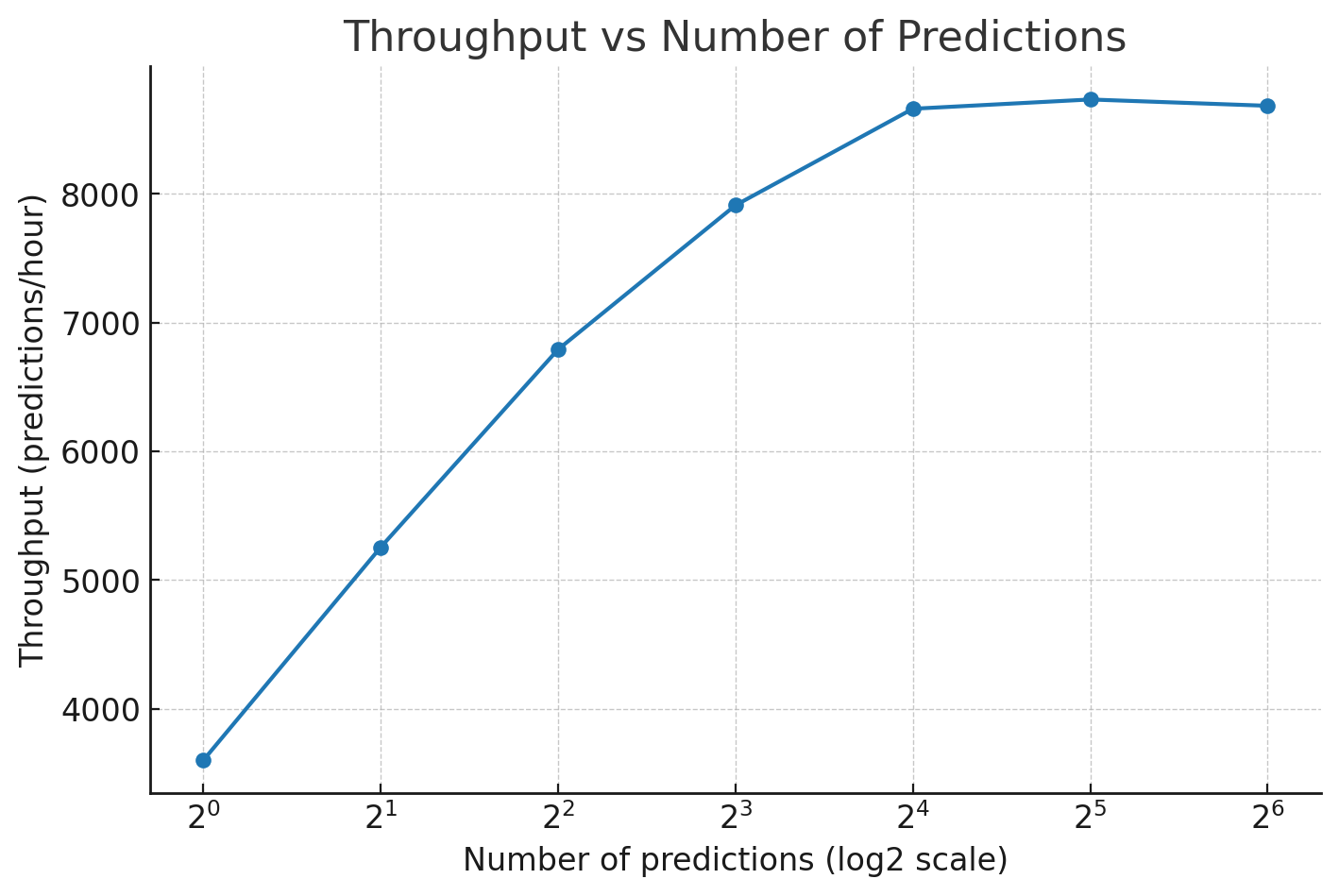 The plot below shows the throughput vs the number of predictions per prompt for the evaluation-2024 dataset.